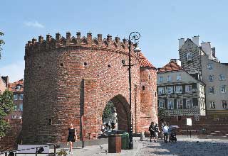 When we talk about the Barbican, we often mean the entirety of the defensive walls surrounding the Old Town. In fact, the Barbican is the entrance gate connecting the royal Old Warsaw and the neighboring New Warsaw. In the 13th century, an earth rampart around Old Warsaw was built as the first fortifications. Brick fortifications were built between the 14th and 16th century. The Barbican was built as the last one, in 1548. Its author was a well-known architect in Mazovia, Jan Baptist from Venice. The name Barbican is probably derived from the Italian barba cane which means a dog's beard. If you look at the entrance gate, you can actually see an open dog's mouth inviting you from the poor suburbs straight to the royal estate. Our pooch's task was to protect the city in a special way in the event of an attack. The only way to get to the city through the Barbican was through a draw gate that was thrown over the moat. In addition, the gate was guarded by numerous archers.